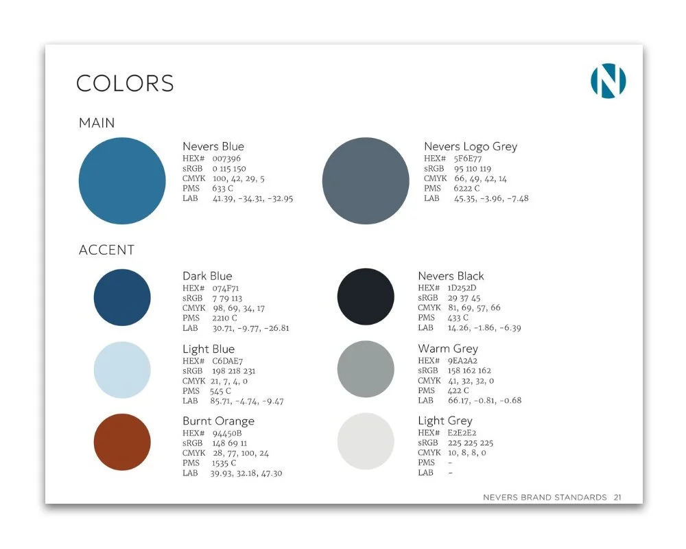 Nevers needed a single source of truth for their brand. We built their standards book from scratch, designing a comprehensive guide that elevates and unifies their brand across every touchpoint. Explore it here →