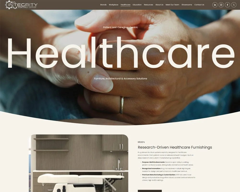 A website refresh turned into something more. We rebranded Integrity Contract Office, built out their content and storytelling with an About Us, Lookbooks catalog, and vertical market pages, and delivered a fast, clean navigation to bring it all home. Explore it here →